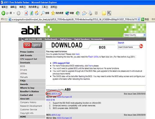 Example: In Windows, BIOS file of AB9: "AB914.ZIP"
