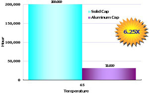 Solid State Capacitors significantly reduce heat dissipation and offer best voltage regulation, thereby increasing performance while extending product life and even under most stressful conditions.