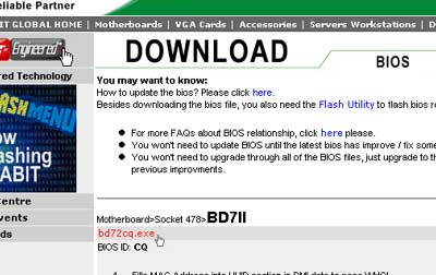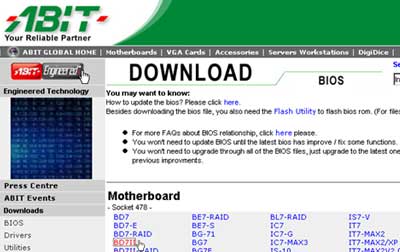 Select motherboard model and bios file. The example here is BD7II (Intel Pentium 4 Platform).